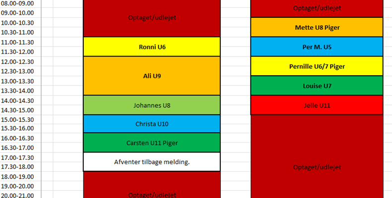 Så vær færdig til tiden og ryd op. Skulle der ikke være nogen efter jer, skal i aflåse hallen igen.