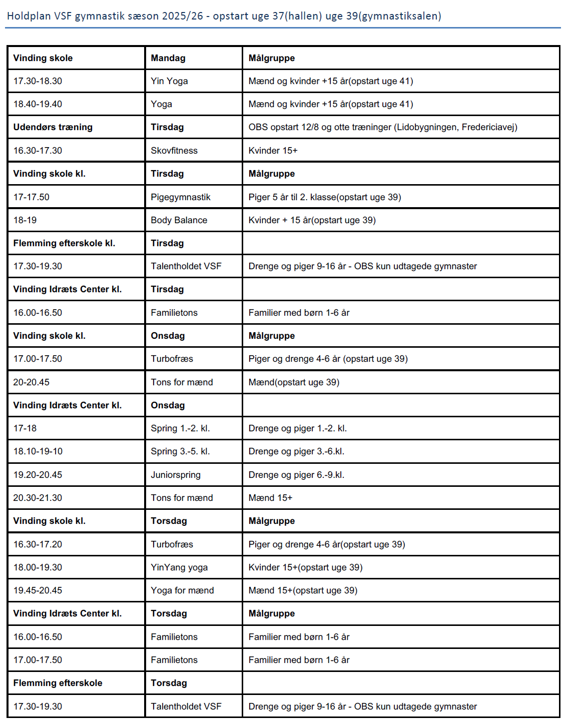 Holdplanen fremgår af nedenstående, med forbehold for ændringer. (ajourført 26-08-2025) og igen (ajourført 29-08-2025)